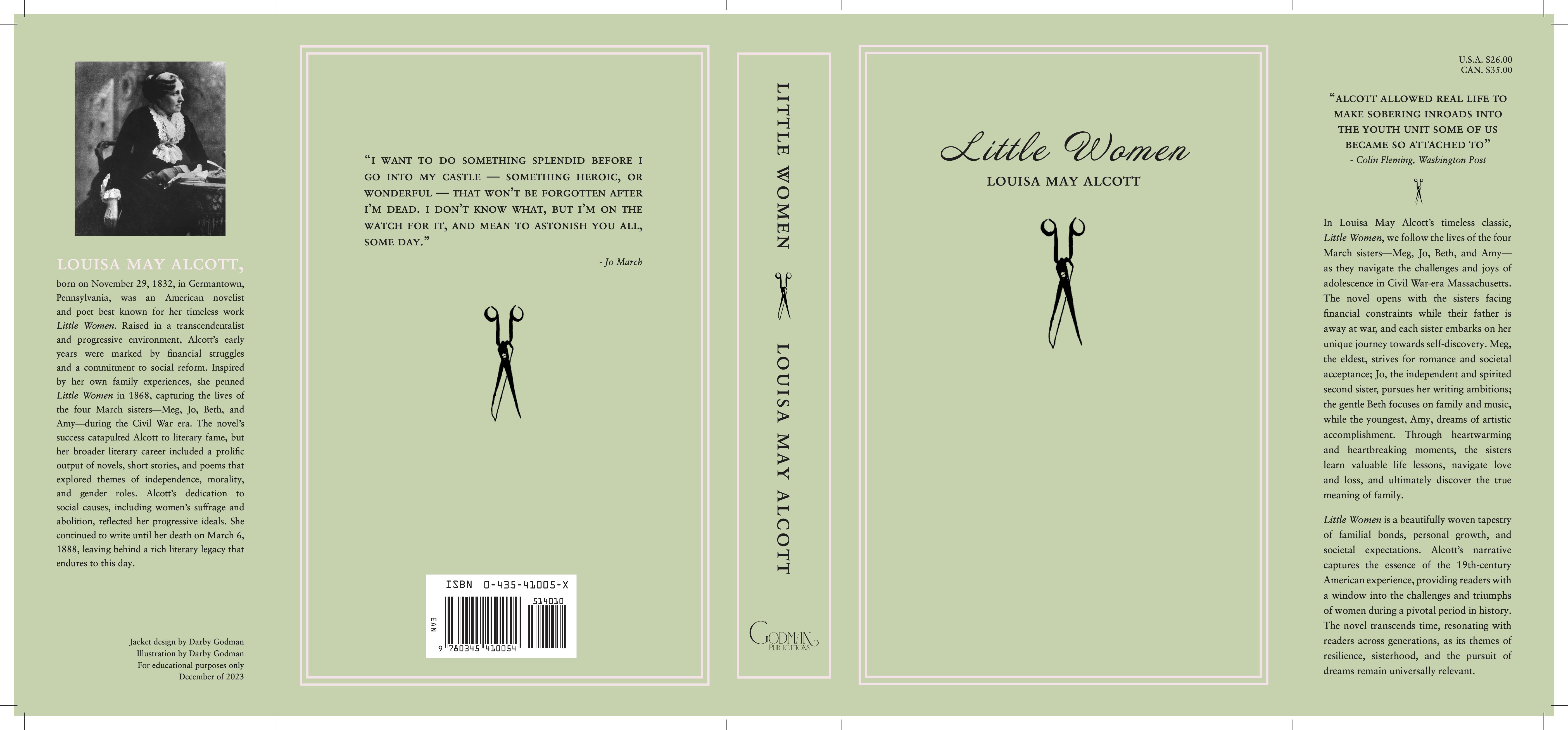 With Little Women being a classic, I felt a pull to keep the outer jacket relatively classical and exclude photography while also using a limited color palette. In the end, I chose to keep the dust jacket on the simpler side. See the final product below.