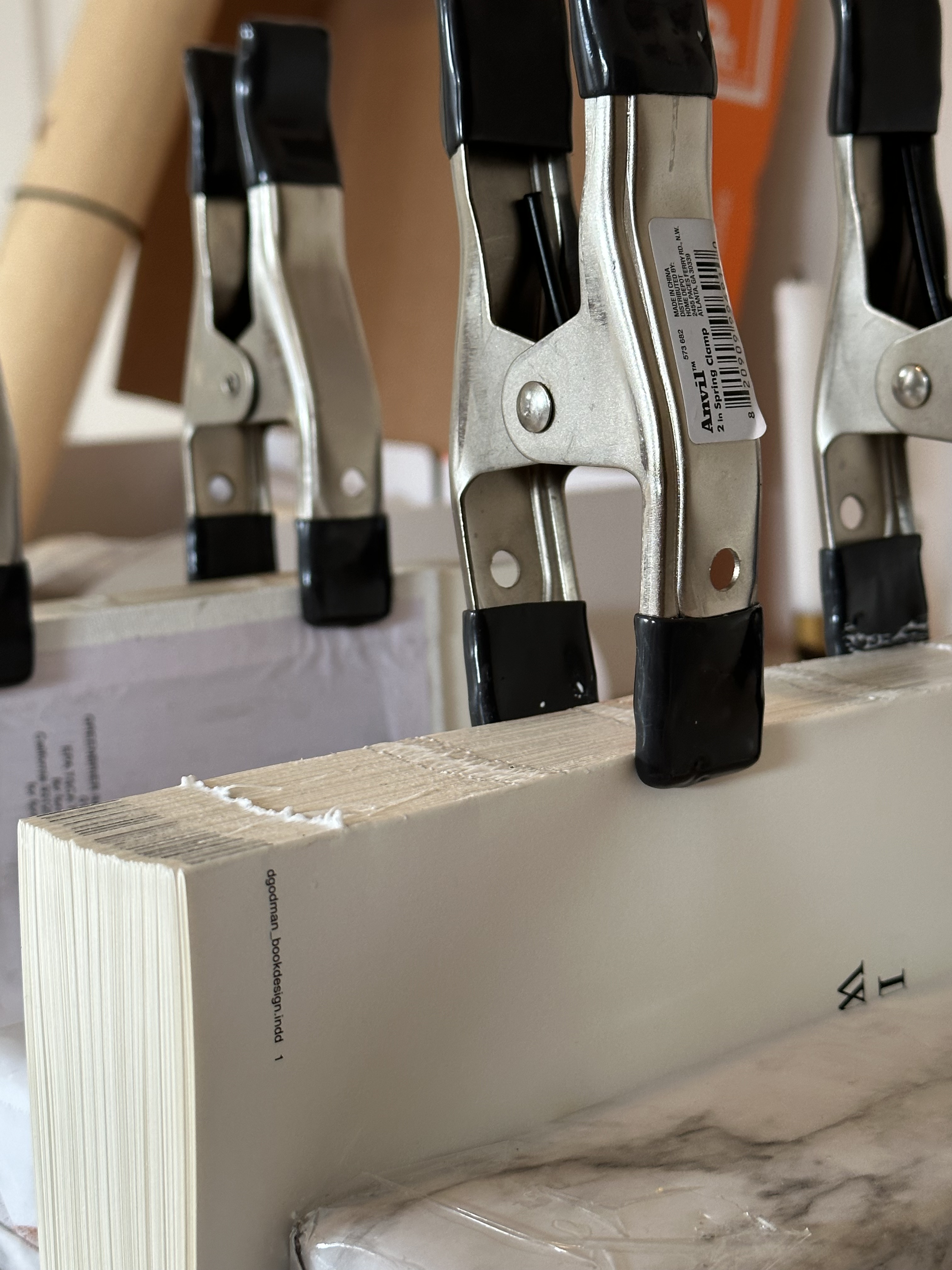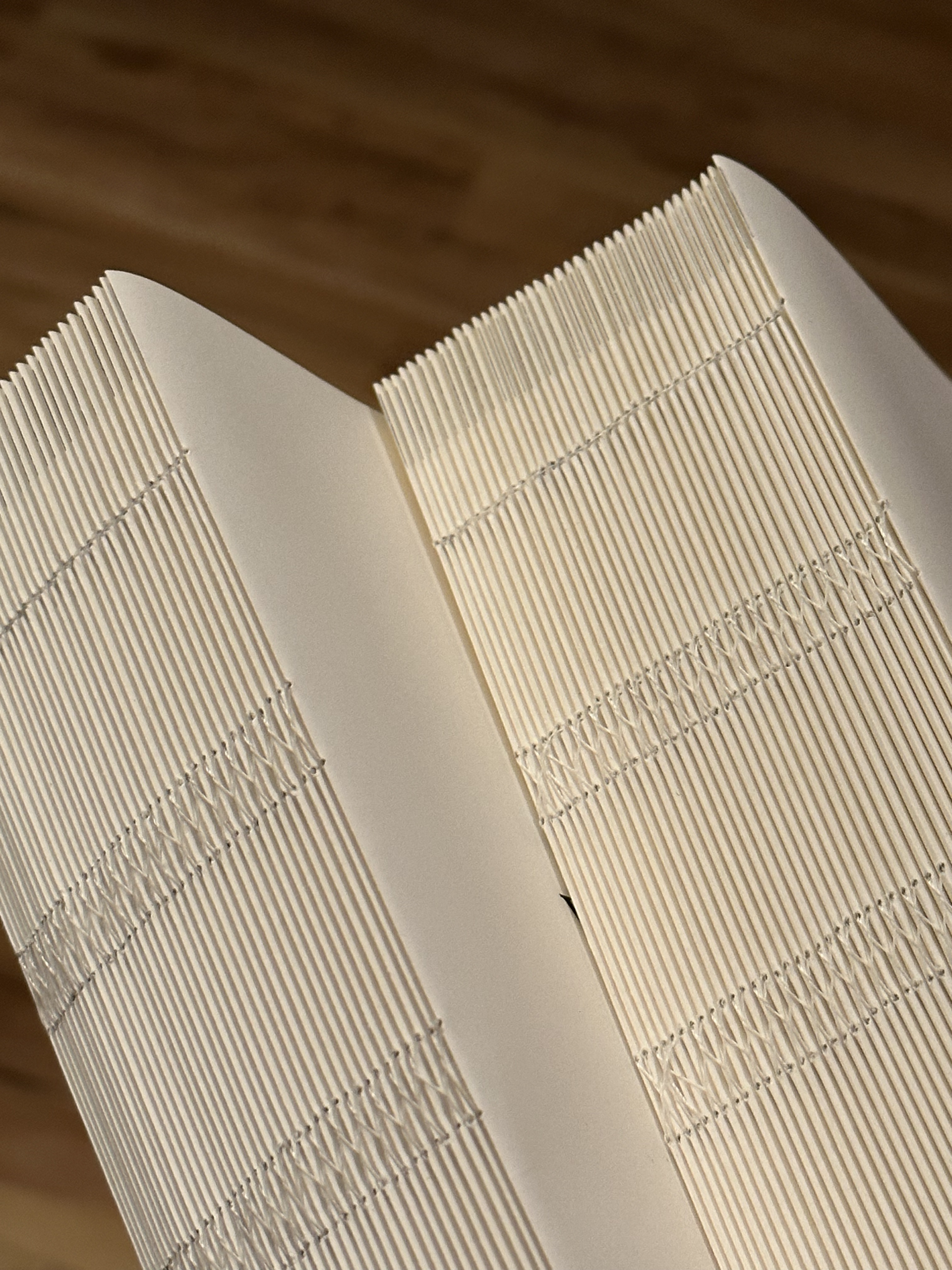 After formatting the text file into printable PDF spreads, the class was able to print their books. We then folded signatures and sewed the book together. In total, my novel ended up being 446 pages plus tip-ins.