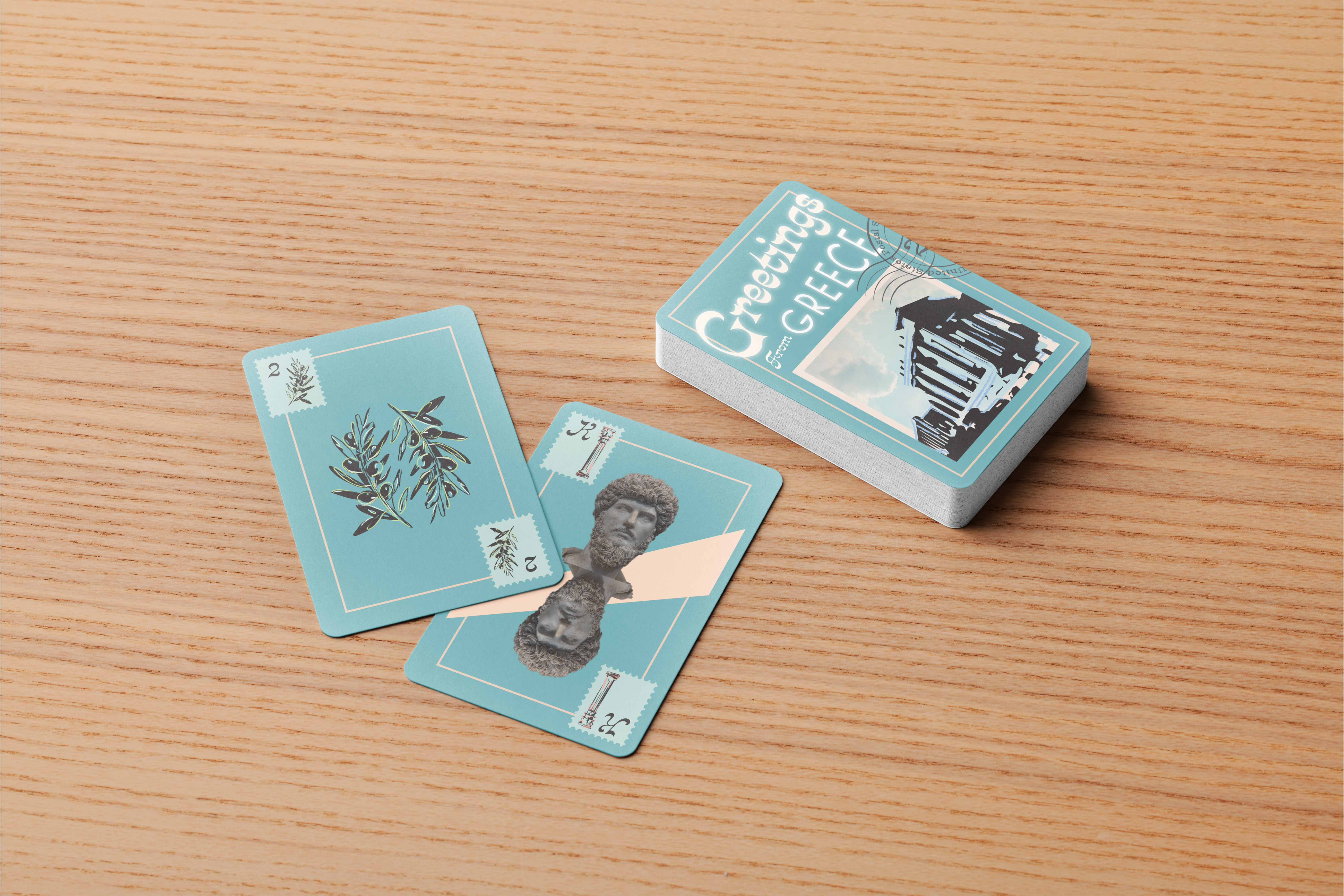 During my time in a Digital File Prep and Workflow class at Cal Poly I created a set of one-of-a-kind playing cards. Having been to Greece previously I found inspiration throughout the country, ultimately having it be the muse of my card set.