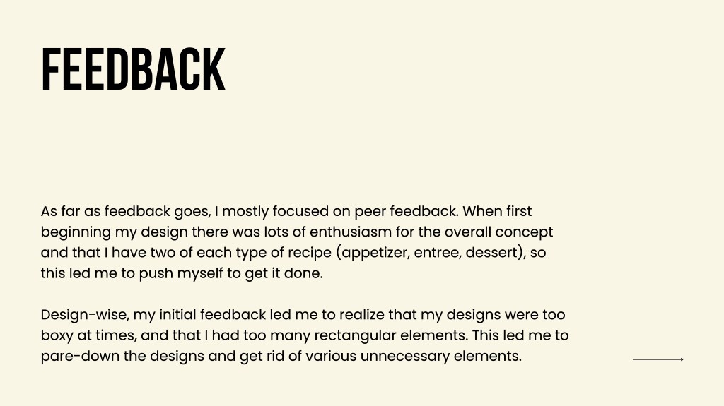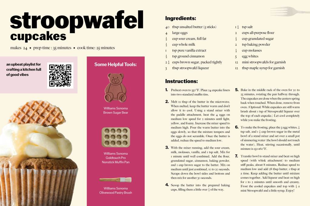 I created a work breakdown structure chart (above) to keep myself organized. After diving deeper with background research and gathering photo materials via Unsplash and the Williams Sonoma website, I then chose recipes to include.